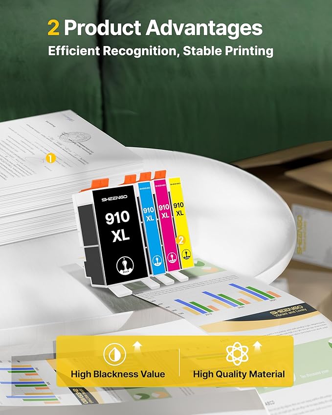 - Ink Color : 910xl ink cartridges Black, Cyan, Magenta, Yellow