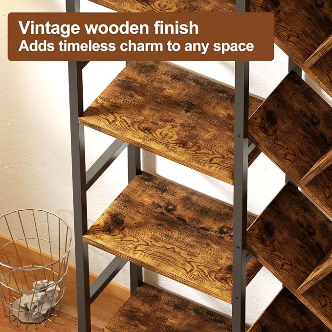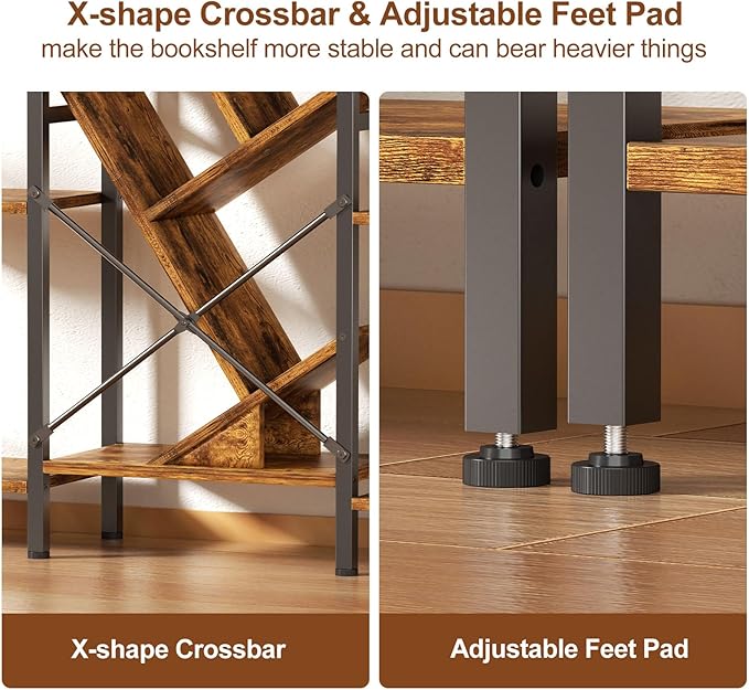 - Iron and Wood Construction: This wooden bookshelf is constructed from a sturdy combination of metal and wood, making it easy to assemble and elegantly designed. The iron frame is durable, and the wooden provide a stable and reliable hold, with a single wooden board supporting up to 75 pounds. The rustic brown bookcase features vintage-style wood board that blend seamlessly with your existing furniture, adding warmth and style.