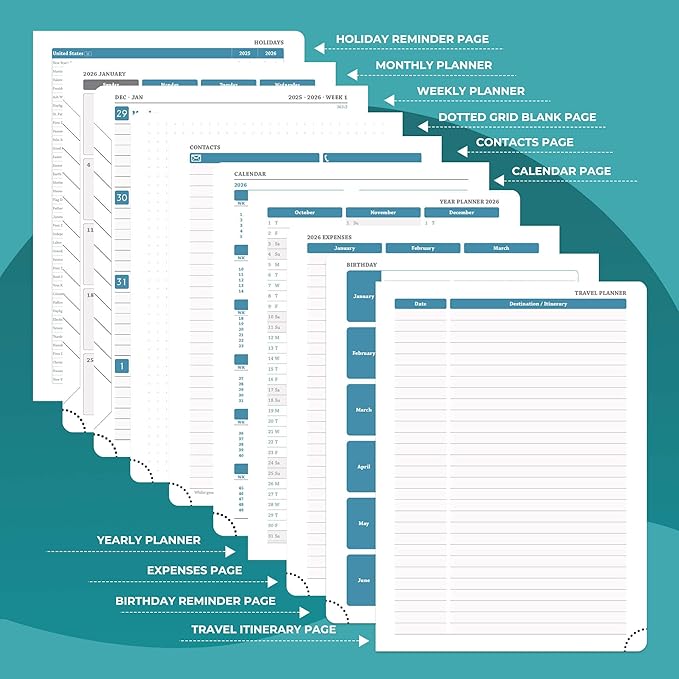 - Professional Grade Material for Your Daily Planner: Crafted with FSC 100GSM thick paper, this 2026 planner ensures good writing with markers while gentle on your eyes through its ivory white pages. The leather soft cover and lay flat binding make it a calendar planner companion for busy professionals, students, and families