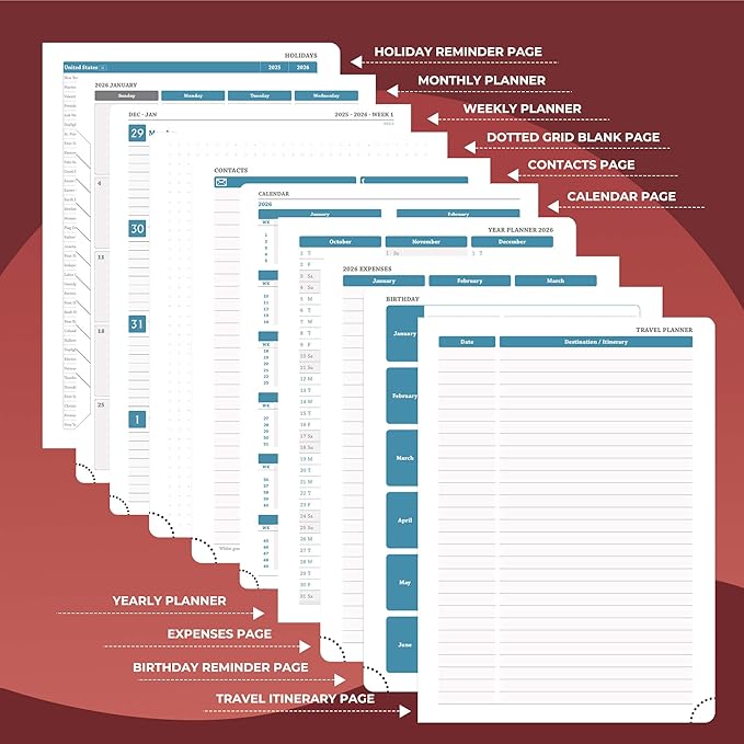 - Professional Grade Material for Your Daily Planner: Crafted with FSC 100GSM thick paper, this 2026 planner ensures good writing with markers while gentle on your eyes through its ivory white pages. The leather soft cover and lay flat binding make it a calendar planner companion for busy professionals, students, and families