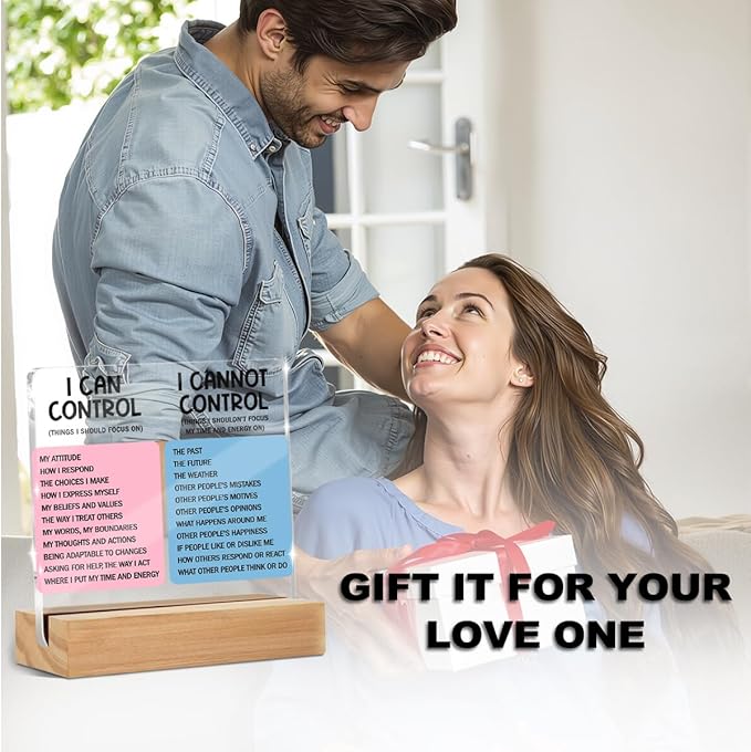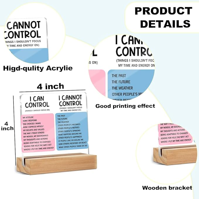 Mental Health Desk Decor Things I Can Control Acrylic Sign, Inspirational Gifts for Women Coworkers, Therapist Office Art Decor for Desk Gadgets Table Top Cubicle Living Room Bedroom Decorations 2