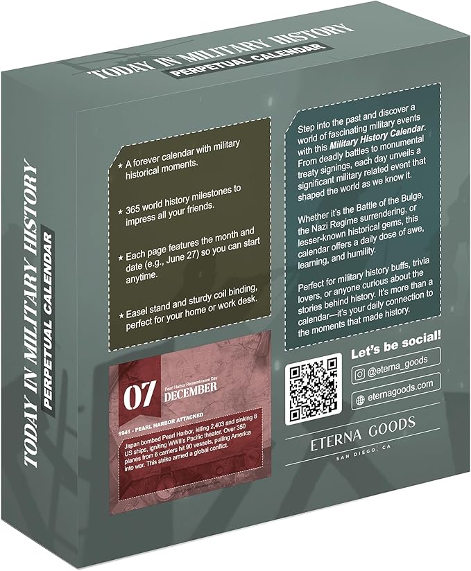 Today In Military History Calendar | Perpetual War History Calendar For The Military History Enthusiast, This Day In Amazing History Trivia Facts & Achievements | History Buff Gift Page A Day Box Calendar with Historical Info For Every Day of The Year
