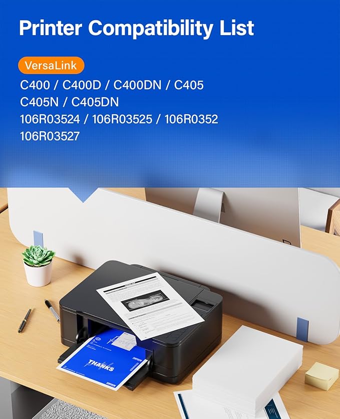 - Compatible Devices : Compatible for Xerox Versalink:C400,C400D,C400DN, C405,C405N,C405DN, Compatible Toner Model:106R03524,106R03525, 106R03526,106R03527 Compatible for Xerox Versalink:C400,C400D,C400DN, C405,C405N,C405DN, Compatible Toner Model:106R03524,106R03525, 106R03526,106R03527