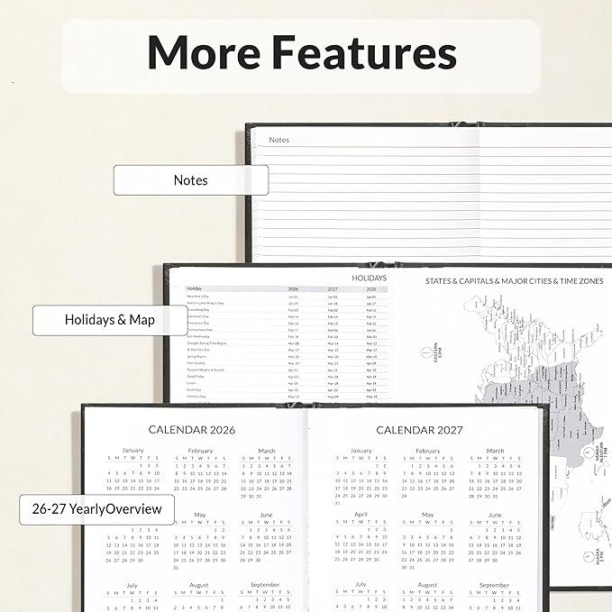 - Complete with Extras: Includes 2026-2030 holidays, US time zones, notes pages, contacts, and expense tracker to help you stay on top of every aspect of life