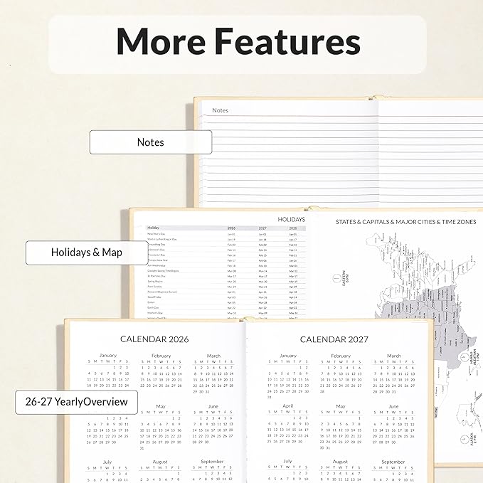 - Complete with Extras: Includes 2026-2029 holidays, US time zones, notes pages, contacts, and expense tracker to help you stay on top of every aspect of life