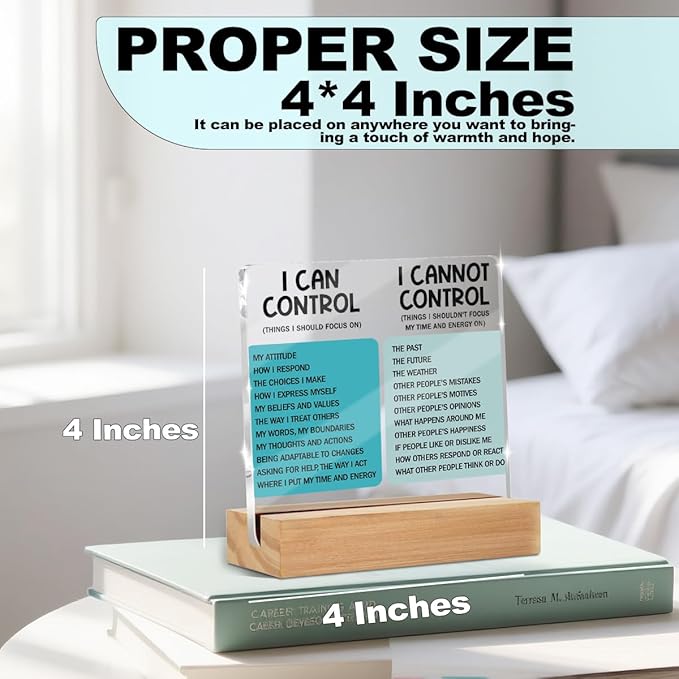 Mental Health Things I Can Control Decor Sign, Motivational Office Acrylic Sign With Wooden Stand, Thank You Gifts for Woman Coworker Nurse Friends Decorative Desk Accessories Table Shelf Decor-2