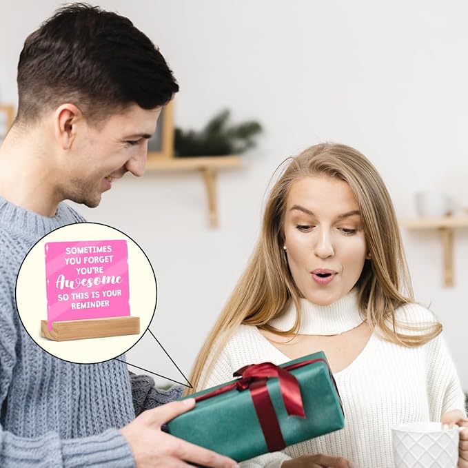 Inspirational Gifts for Women, Reminder Quotes Acrylic Decor Sign With Wooden Stand, Thank You Gifts for Woman Friends Coworker Decorative Sign for Tabletop Cubicle Shelf Desk Accessories Decor