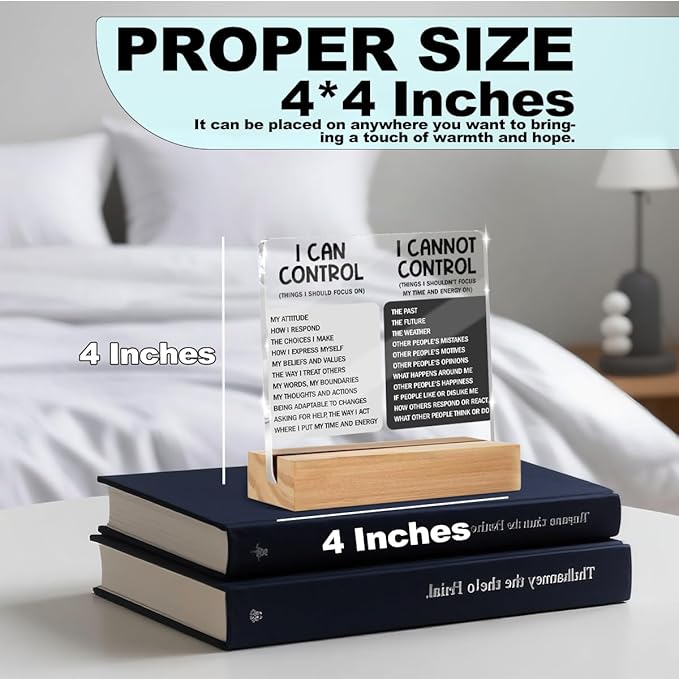 Things I Can't Control Office Decor Sign, Motivational Quotes Acrylic Sign With Wooden Stand, Thank You Gifts for Woman Coworker Nurse Friends Decorative Desk Accessories Table Shelf Signs Decor-1