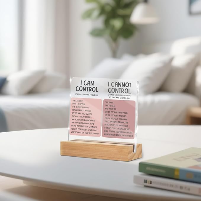 Things I Can't Control Office Decor Sign, Motivational Quotes Acrylic Sign With Wooden Stand, Thank You Gifts for Woman Coworker Nurse Friends Decorative Desk Accessories Table Shelf Signs Decor-2