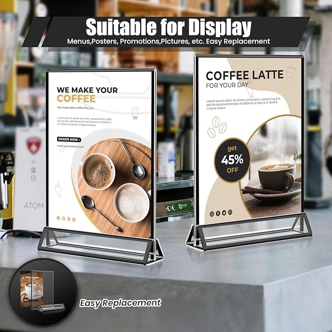 - 【Double-Sided Display Design】This uniquely designed 15 Pack 5x7 black acrylic sign holder features a back-to-back double-sided display design. Its vertical double-sided structure ensures clear visibility of two photos or menu signs, making your table arrangement practical and visually appealing from any angle.