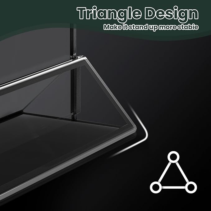 - 【Easy to Assemble】Only 3 steps to get the acrylic stand ready for use, firstly tear off the protective film on the acrylic blackblack frame, adopt the triangular groove base for better inserting the table sign or anything you want to display. At last, push the frame into the base. And if you want to store them, you can just separate the frame and base and put them into a box without any hassle.