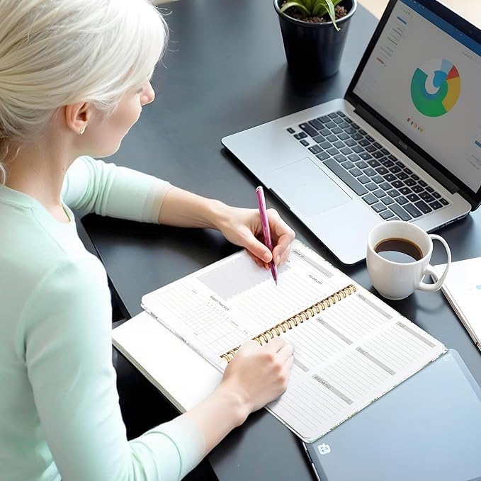 - 【Spiral Binder Planner Notebook】The weekly planner for women is bound in spirals, convenient for turning pages or tearing off used pages to make daily plans again.
