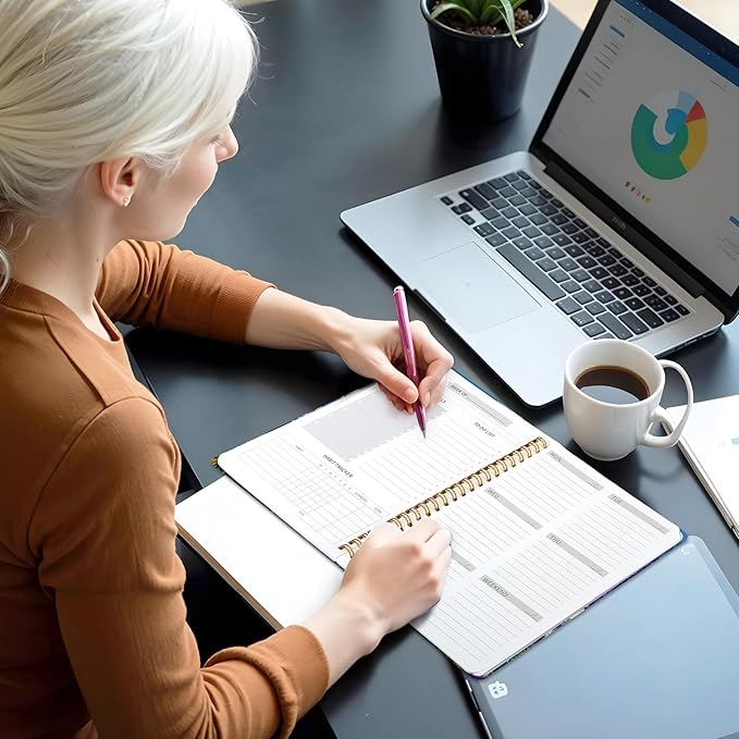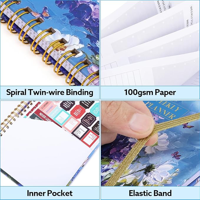 - 【Spiral Binder Planner Notebook】The weekly planner for women is bound in spirals, convenient for turning pages or tearing off used pages to make daily plans again.