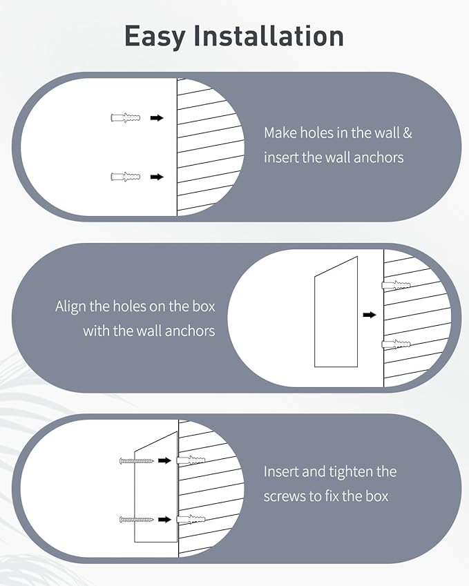 - Ultra-Convenient Design: Greatly optimized connection between the top cover and the back plate. Use flexible piano hinge instead of common screws. You can install it tightly against the wall and open the cover completely without hitting the surface