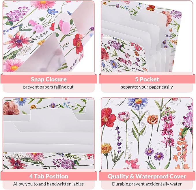- Quick Access:Each folder features 5 expanding pockets with side openings for easy insertion and removal of documents. Includes 8 writable index labels to keep everything clearly categorized.