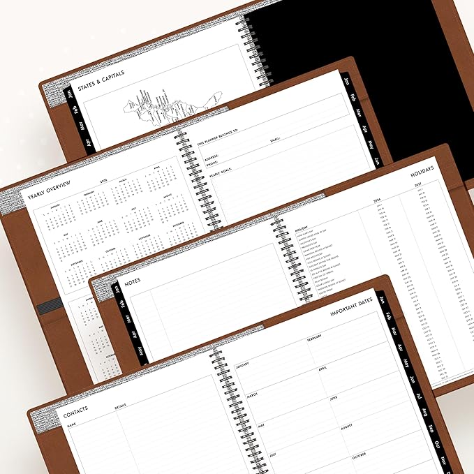 - [BUILT TO LAST] Designed with a faux leather cover and premium pages that endure daily use while maintaining a sleek, professional look. Printed on quality FSC-certified paper with convenient laminated tabs that are durable enough to handle daily use throughout the year