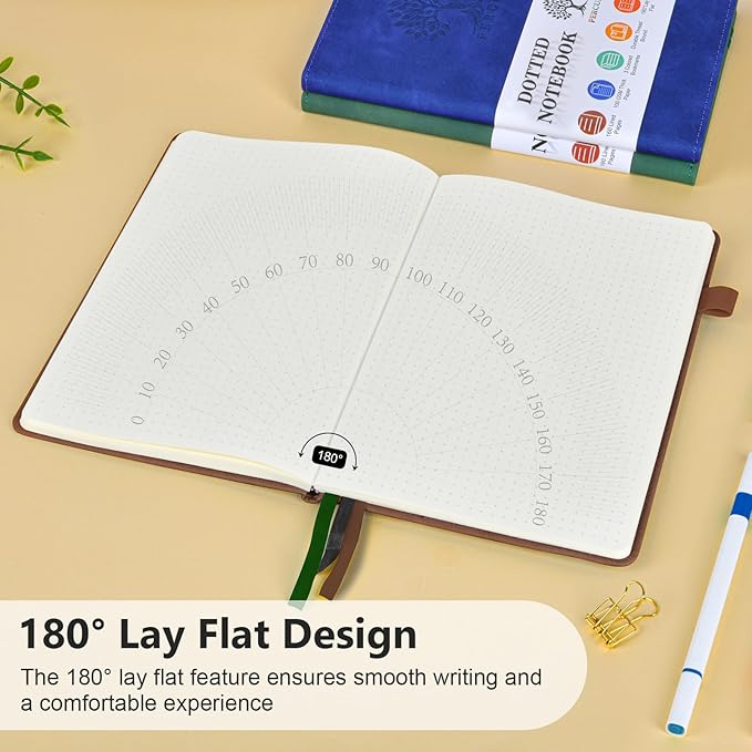 - 【160 PAGES PREMIUM DOTTED NOTEBOOK】:PERCUN A5 dotted journal features 160 pages of smooth, acid-free dotted grid paper (5.9” x 8.5”), ideal for bullet journaling, note-taking, sketching, and planning. The thick 100 GSM paper resists ghosting and bleed-through, ensuring your ideas stay crisp with pens, markers, or fountain inks.