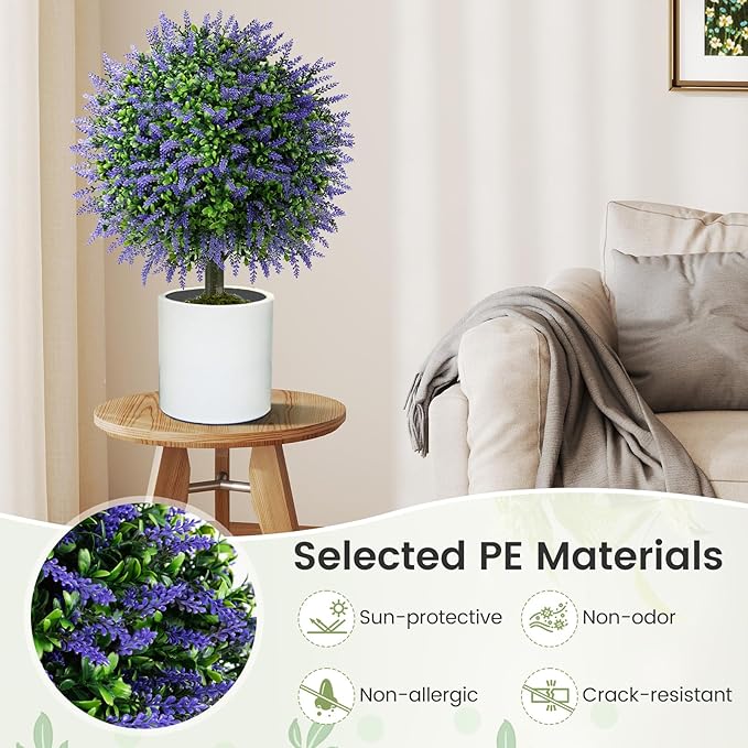 - High-Quality Materials: The artificial boxwood ball trees are crafted with selected PE materials to ensure durability. These faux plants are sun-protective and crack-resistant, as well as non-odor and non-allergic, making them ideal for both indoor and outdoor environments.