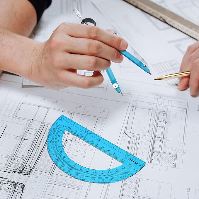 EBOOT Student Geometry Math Set, Drawing Compass and 6 Inch Clear Swing Arm Protractors 180 Degree Math Protractor(Blue and Blue)