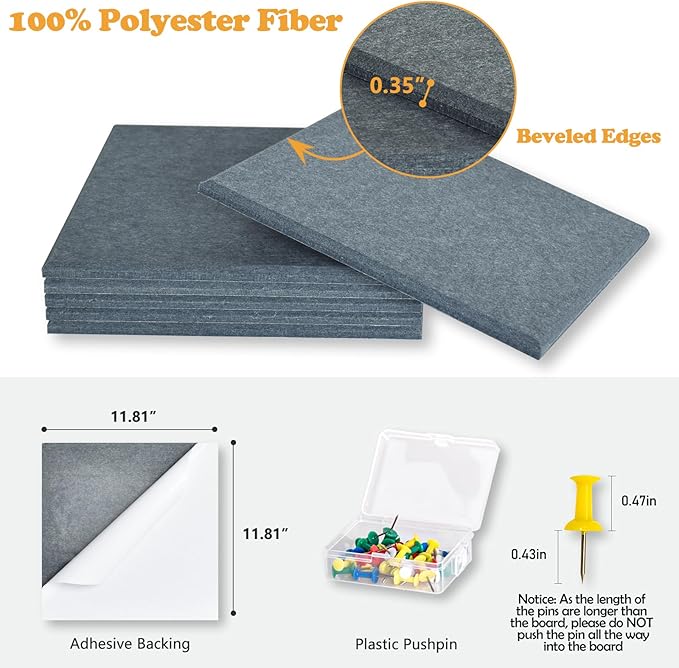 - ADDITIONAL FEATURE - The polyester fiber panels with porous structure help absorb air vibrations in sound waves, reduce sound reflection and echo. Install as a whole wall for higher noise reduction