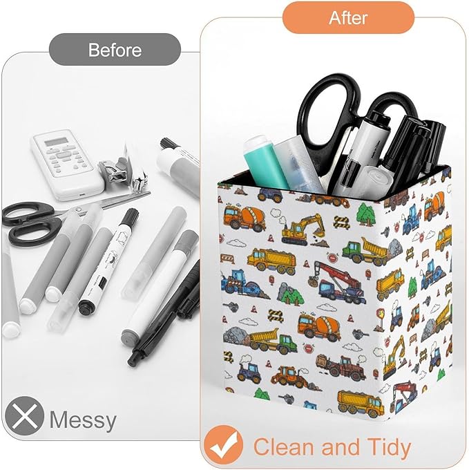 Square Pen Holder & Pencil Organizer for Desk - Office Storage Organizer, Markers/Makeup Brushes/Scissors Holder, Compact Desk Decor Accessories for Home Classroom School(Truck)