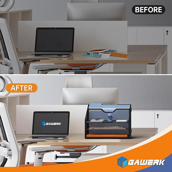 - Unique Design: 3 horizontal trays for storing letters and other office essentials, and rear 2 upright area for file folders.