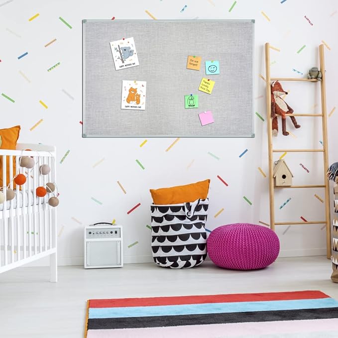 - Light Grey Bulletin Board(35.8 x 24 Inch):Premium Fabric Pin Board with Aluminum Frame for Notes, Photos & Memos. (Easy Wall Mounting Included)
