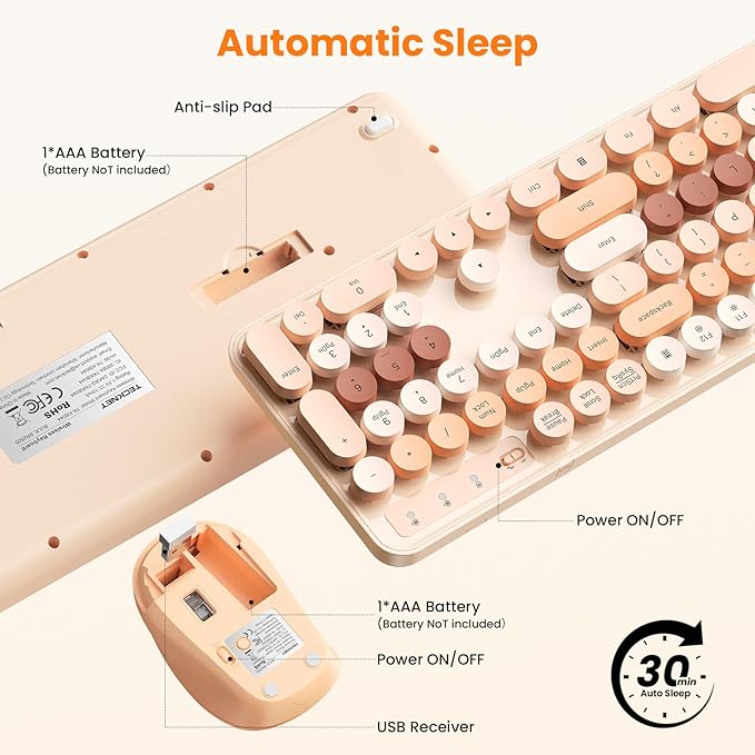 - 【Complete Retro Wireless Set with Matching Mouse】More than just a pretty desk accessory — this TECKNET retro keyboard and mouse combo combines vintage aesthetics with reliable daily performance. The coordinated design enhances productivity and adds personality to your workspace.