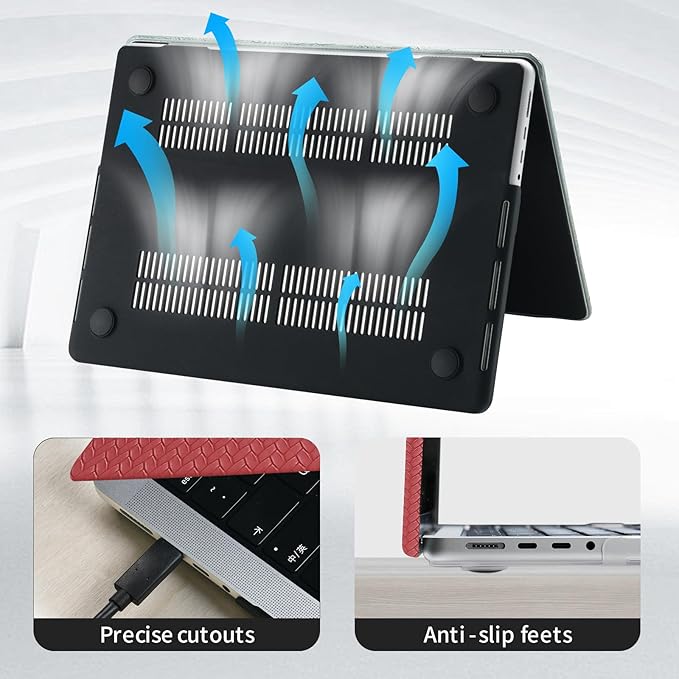 - Fully access, Staying cool: Thoughtfully designed cutouts ensure easy access to all ports and features. This Mac Book Air 13 inch 2024 Case allows you to open the screen to pass over 120 degrees, providing a smooth and hassle-free experience. Mesh vent slots and 4 raised rubber feets on bottom case help accelerate air circulation to achieve maximum heat dissipation. Four anti-slip rubber feets also provide good grip, keeping your MacBook Air 13 M2 stable and secure