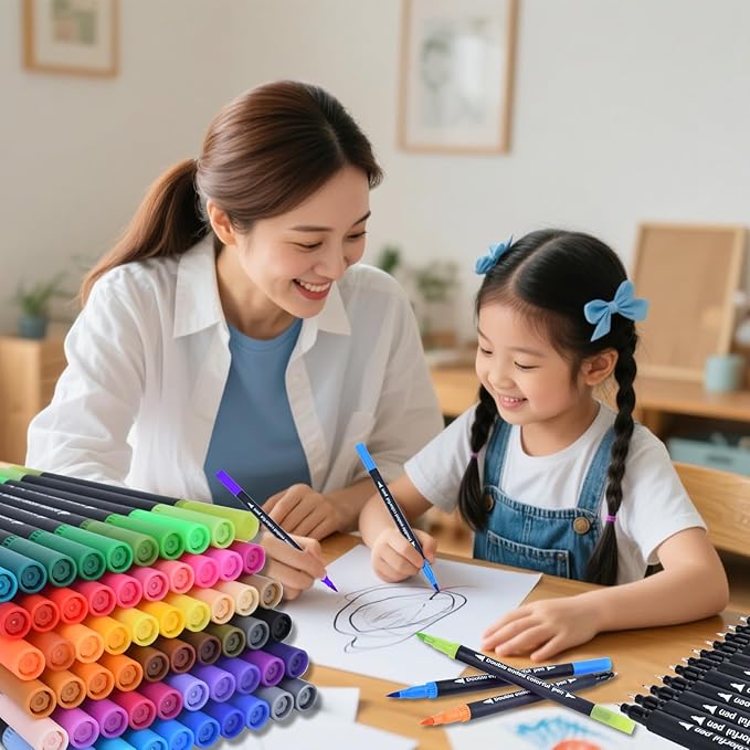 - HIGH QUALITY & VERSATILE: These dual markers brush pens are made of high-quality materials and provide rich color options; not only suitable for adult coloring books, but also for blending and layering bright colors on non-traditional surfaces such as card stock, glass, fabric, ceramic and stone