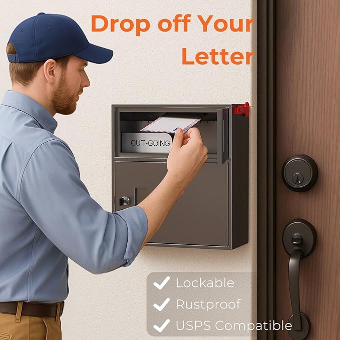 - USPS-Compatible with Outgoing Mail Flag: Designed to fit standard USPS letter-size mail. The built-in red flag clearly signals outgoing items for your postal carrier—no need for a separate mailbox unit.