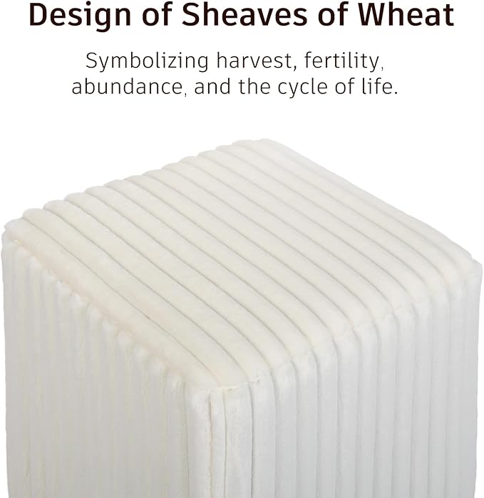 Modern Square Ottoman, Vertical Channel Tufted Foot Stool Ottoman, Velvet Upholstered Vanity Stool for Makeup, Bedroom, Living Room, White