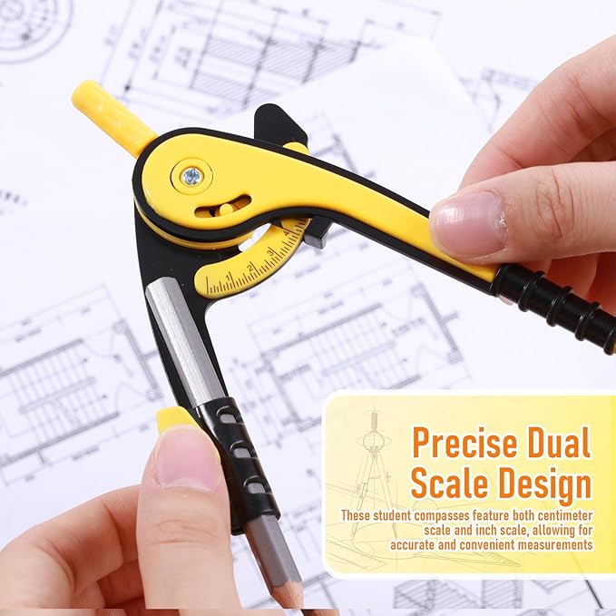 - 2 Diverse tips design compass: compass is made of plastic, sturdy mechanism can hold a radius well; The opposite side of the pencil end is an adjustable separated jaw, which allows you to fix the pencil