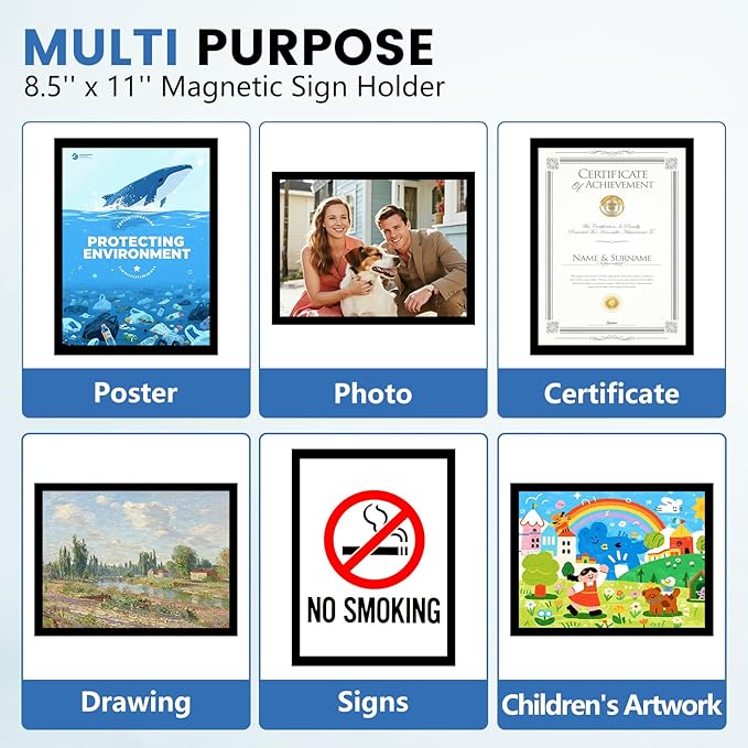 - 【Magnetic Sign Holder】This Package includes 25 Pack magnetic display frames, Each magnetic photo frame features a display area of 8.5" x 11", with an outer dimension of 9.5" x 12". Constructed with double-layer magnetic strips, a high-definition transparent front cover, adhesive backing, and release liner, these magnetic frames adhere to any flat smooth surface to showcase your photos