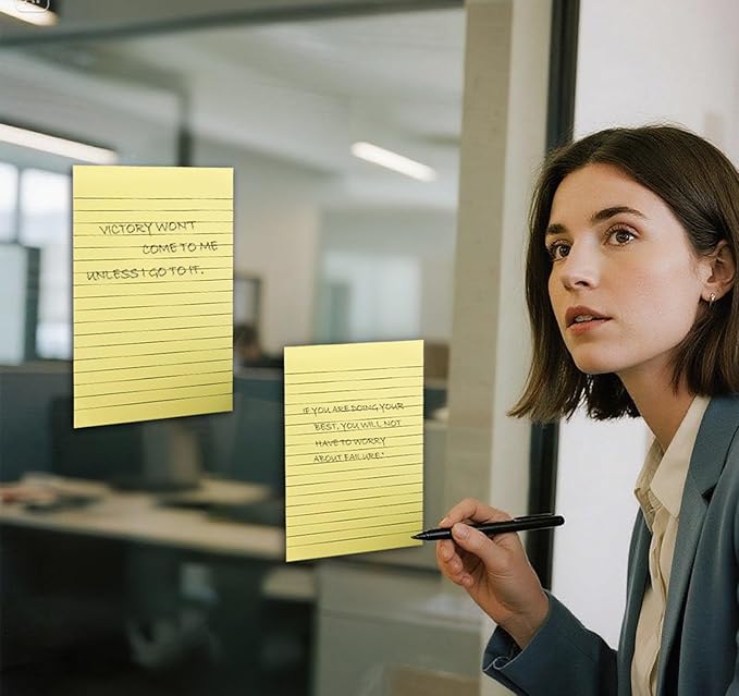 - Soothing Yet Eye-Catching Design: The soft light yellow sticky notes color provides optimal contrast against white surfaces without harsh glare. This lined sticky notes 8x6 set combines functionality with visual appeal - the muted hue draws attention to important messages while blending seamlessly with professional environments.