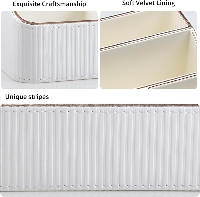 Remote Control Holder with 4 Compartments, PU Leather Small Nightstand Organizer for Home Desk Accessories Office Supplies, Multifunctional Stylish Small Bedside Desktop Organizers (White)