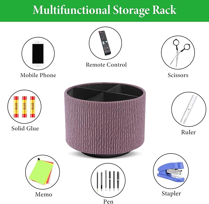 - ✎360° Revolving Design: You can freely rotate the pen holder steadily left and right,unique spinning base design allows easy access to items from any directions.The non-slip pads on the bottom keep it stay in place when rotating.