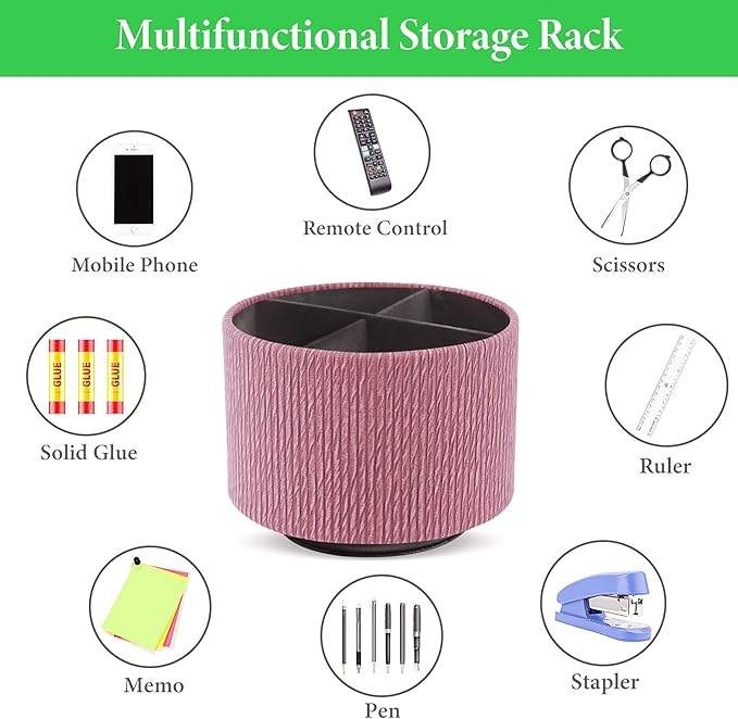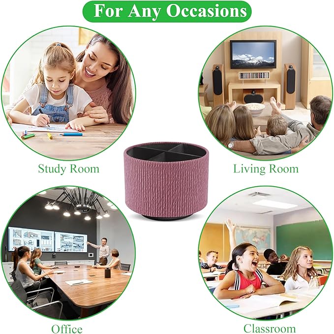- ✎360° Revolving Design: You can freely rotate the pen holder steadily left and right,unique spinning base design allows easy access to items from any directions.The non-slip pads on the bottom keep it stay in place when rotating.