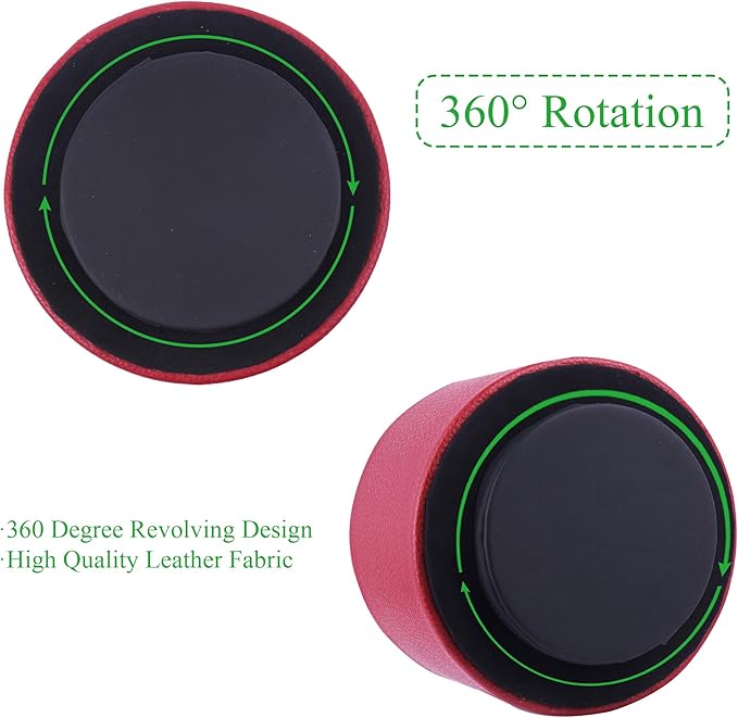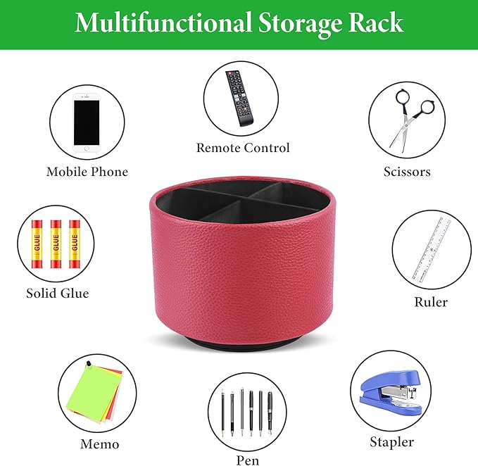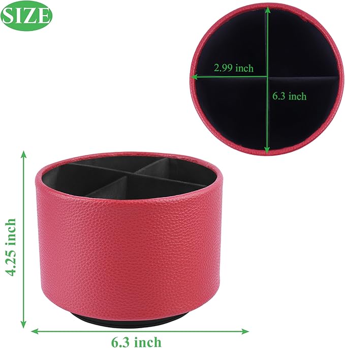 Hennaja Round Leather Art Supply Organizer,Remote Control Holder,360 Degree Spinning,Multi-Functional Pencil Holder,4 Compartments Desktop Stationary Organizer(1-Lichee Red)