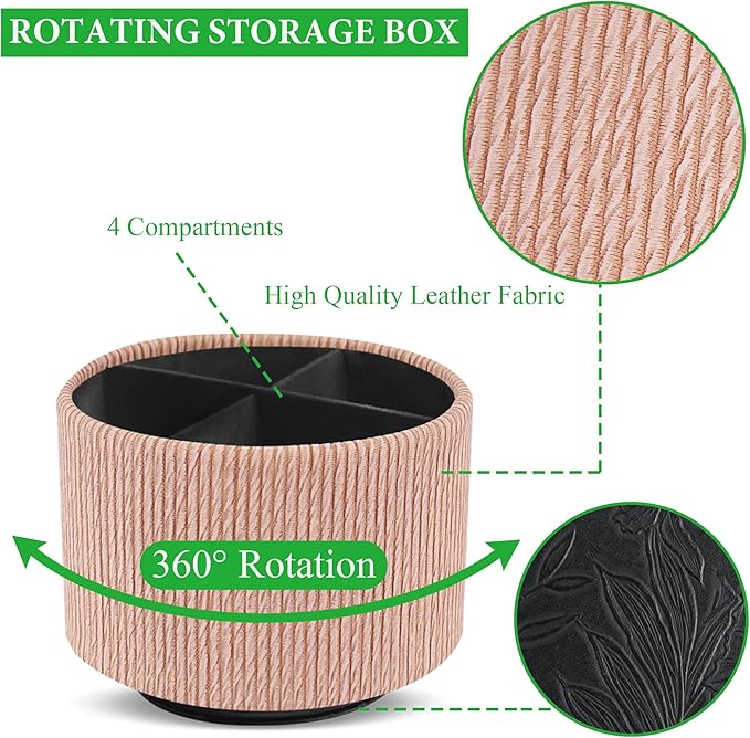Hennaja Round Leather Art Supply Organizer,Remote Control Holder,360 Degree Spinning,Multi-Functional Pencil Holder,4 Compartments Desktop Stationary Organizer(1-Wood Apricot)