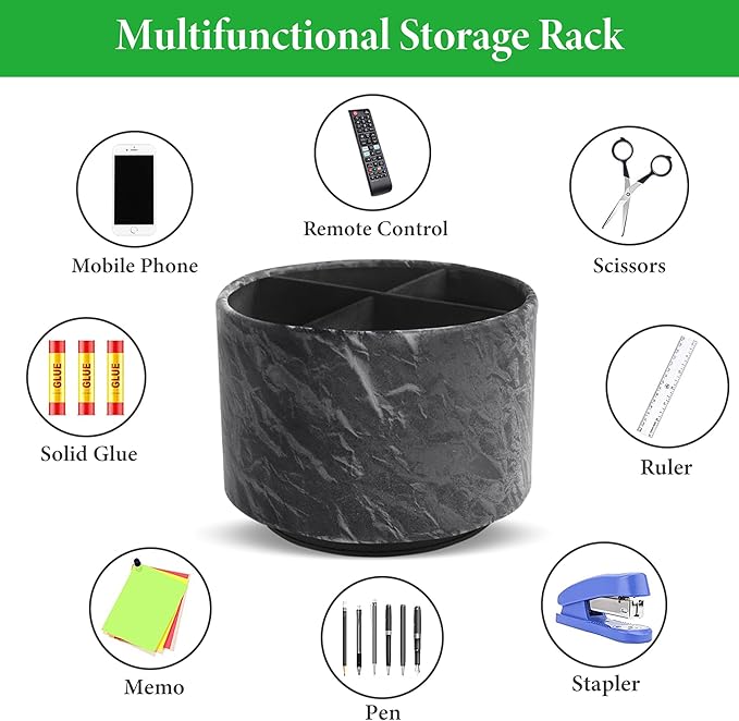 - ✎360° Revolving Design: You can freely rotate the pen holder steadily left and right,unique spinning base design allows easy access to items from any directions.The non-slip pads on the bottom keep it stay in place when rotating.