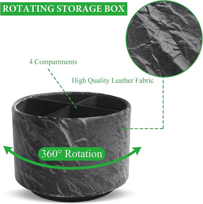Hennaja Round Leather Art Supply Organizer,Remote Control Holder,360 Degree Spinning,Multi-Functional Pencil Holder,4 Compartments Desktop Stationary Organizer(1-Hill Black)