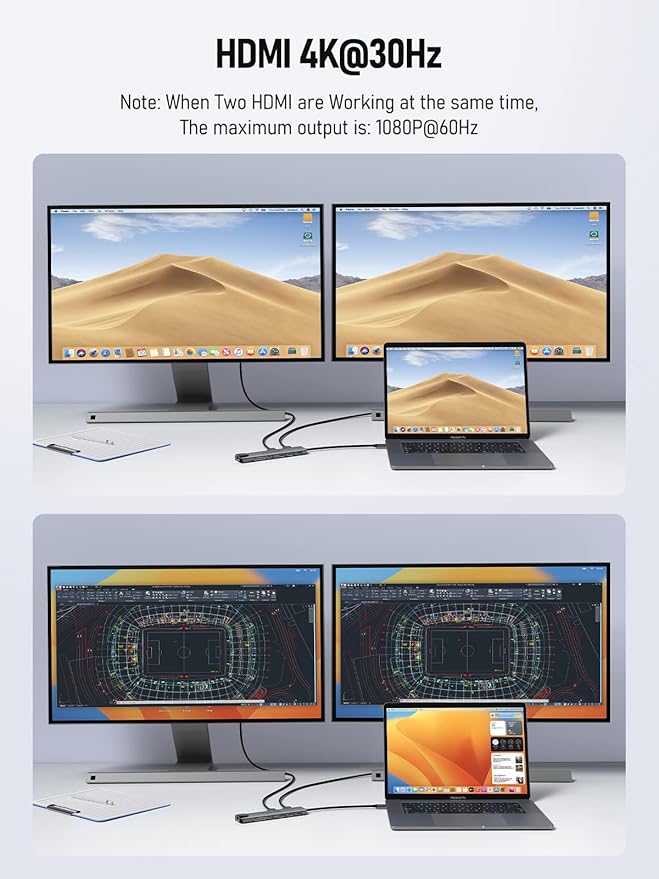 - Hub USB-C Dual HDMI Ethernet 1000Mbps: The dock provides high-quality visuals and easily extends the display to any HDMI TV, PC monitor, or laptop. The USB-C Hub Ethernet supports Gigabit networking, offering fast and stable connectivity in areas with poor Wi-Fi signals, and is 10 times faster than Wi-Fi. It supports both extended mode and mirror mode. The USB-C Hub Docking Station supports both SST (Single Stream Transport) and MST (Multi-Stream Transport) modes.