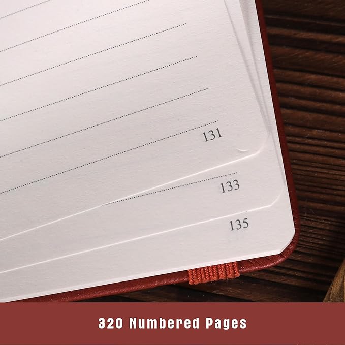 - 【320 Numbered Pages Of Thick Paper】This vintage journal notebook uses 100 gsm thick paper, which is 20% thicker than normal paper, and it is not easy to write through the ink, features 320 numbered pages, the date and page number design on each page helps you to plan yourself better.