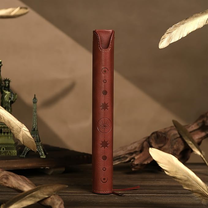 - 【Hardcover Leather Journal】Our hardcover leather notebook uses faux leather with a silky touch, the mystic Evil Eye cover design gives the notebook a deep sense of mystery and vintage feeling, bring good luck and dispel negative energy, the unique spine-stitched binding adds to the solidity of the notebook, and comes with a pen that can fits in the spine.