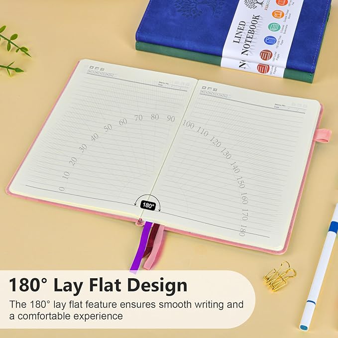 - 【180° LAY FLAT DESIGN & PREMIUM LINED PAPER】: Lay the notebook completely flat for easy writing in any setting—whether at your desk, in a café, or on the go. The 160 pages of 100 GSM lined paper (7mm spacing) offer a smooth writing experience, ideal for journals, work notes, school assignments, or Bible study notes, with minimal ink bleeding or feathering.