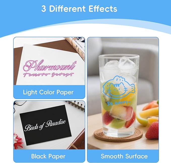 - 36 Vibrant Colors with Dual-Tone Effect: Explore 36 dazzling metallic colors that deliver a unique inner-colored & outer-glitter outline effect. For the best results: Use on porous paper to see the shimmering metallic outline; on smooth surfaces (like glass or our included practice cards), enjoy a vibrant solid color. The ergonomic triangular grip ensures comfortable control.