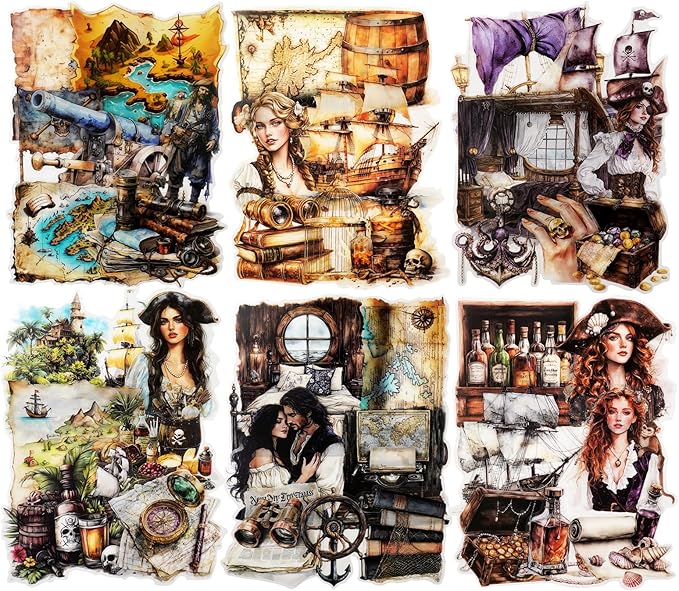 - Vintage Nautical Designs: 6 themed packs with 120 retro-style pirate stickers featuring characters, ships, maps, and treasures. Each design fits within 3.54×3.54 inches, ideal for detailed journal spreads and scrapbooking