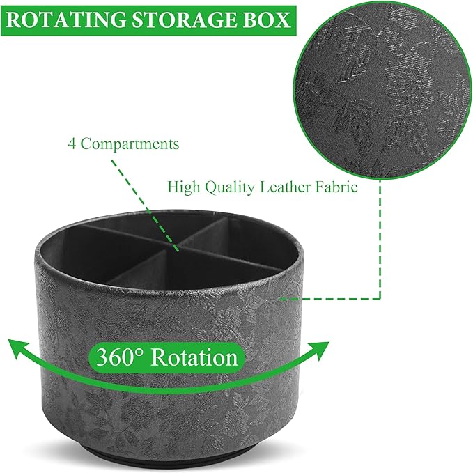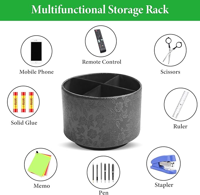 lizimandu Round Leather Art Supply Organizer,Remote Control Holder,360 Degree Spinning,Multi-Functional Pencil Holder,4 Compartments Desktop Stationary Organizer(1-Liuli Black)