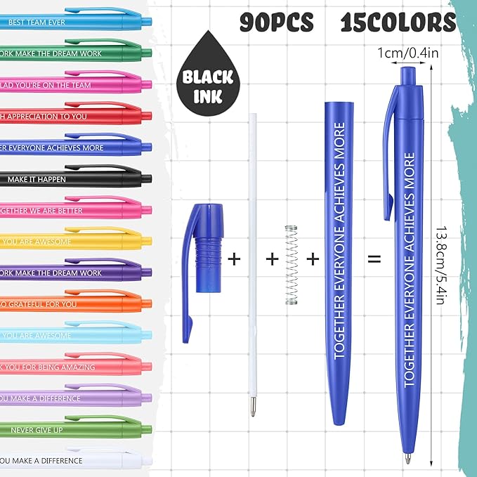 90 Pcs Ballpoint Team Building Pen Inspirational Quotes Black Gel Ink Pens Bulk for Appreciation Coworkers Employee Retractable Rolling Ballpoint Pens for Party Favor Gifts Supplies (Team)
